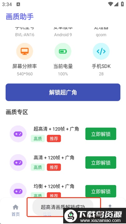 3、界面提示解锁成功,即可进入游戏享受优化后的画质。