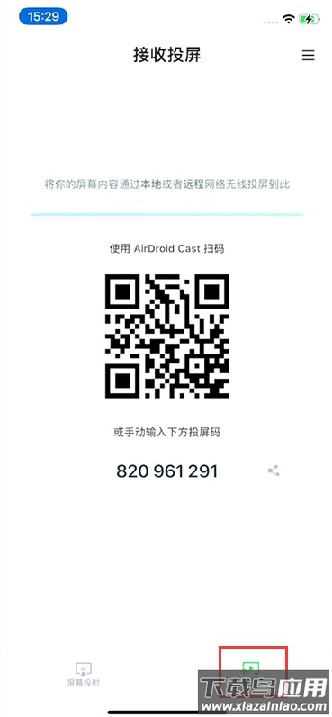 在接收设备上:点击接收端手机界面右下角的“接收投屏”,屏幕将显示一个二维码与一组9位数字的投屏码。