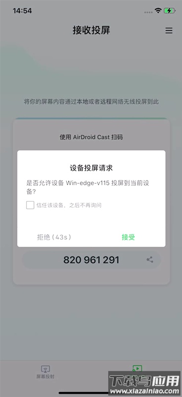 第三步:接收端收到投屏请求;接收设备将弹出提示询问是否允许投屏,点击“允许”即可;若勾选“信任此设备,不再询问”,则后续连接将不再重复确认。