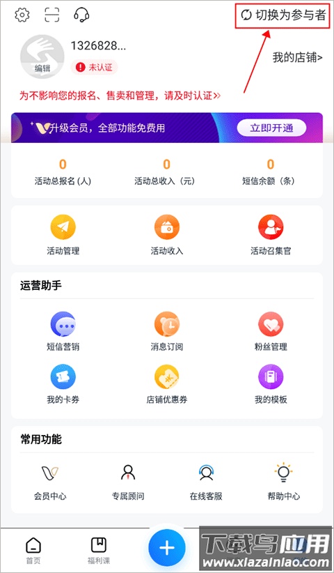 1. 打开app并登录,进入“我的”页面,点击顶部“切换为参与者”选项。