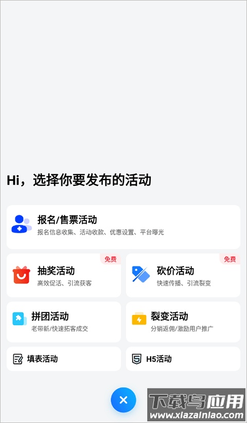 2. 在弹出页面中选择需要发布的活动类型。
