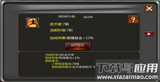 满足等级要求的玩家在界面中选择已就职的副职业,点击提升等级即可完成操作;每次升级都会消耗一定数量的修行值。