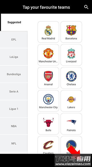 4、选定联赛后,即可选择希望重点关注的具体队伍,选择后相关新闻与提醒将优先推送;