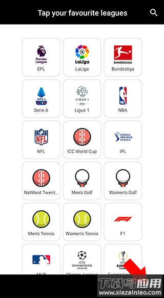 3、随后选择你最常观看的联赛项目,点击对应图标即可添加,支持一次性添加多项,此设置后续可在应用中调整;