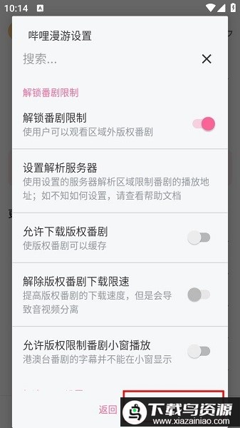 2、在设置中找到并勾选“解锁番剧限制”选项。