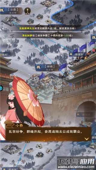 游戏在玩法上赋予了玩家高度自由。你可以在自己的封地中建造功能各异的设施,妥善处理内政事务,将城池治理得井然有序;闲暇时亦可与红颜知己互动,享受片刻宁静。若你志在天下,便需精心谋划,时刻权衡经济与军事实力,招揽更强的三国名将,率军开疆拓土,逐步壮大势力,最终成就一代霸业。这款游戏听起来就充满挑战与乐趣,快来《城主天下》施展你的雄才大略吧!