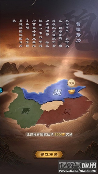 2、在魏、蜀、吴三大势力中择一加入,随后便能建立属于自己的王城;