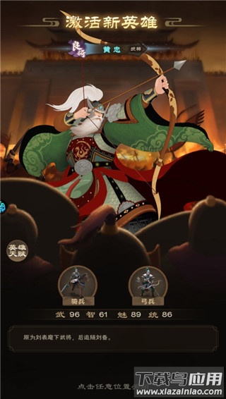 5、接下来玩家将获得首位将领——老当益壮的黄忠;