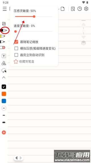 5、选择工具栏中的笔,可调整其灵敏度等设置