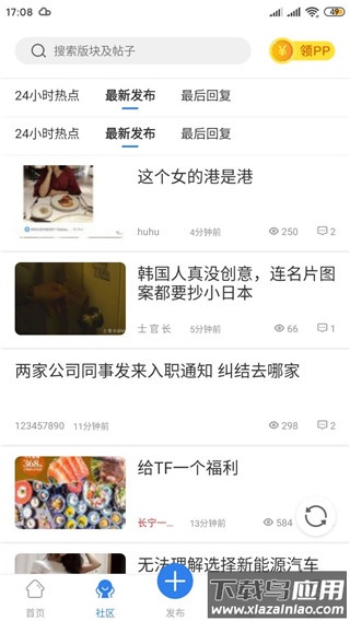 3、进入社区栏目,可以查看论坛用户发布的所有帖子;