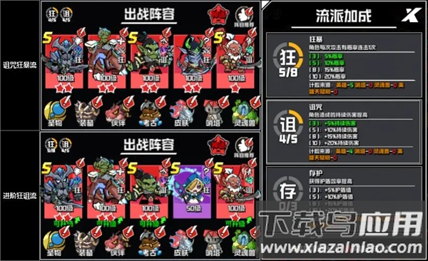 凑齐二级狂暴流派加成后,以亡灵骑士为主输出,复仇者或精灵游侠为副输出。亡灵骑士拥有高频持续伤害,清理小怪及对BOSS造成附加伤害的效果显著,且前期较少受到水属性减益影响,能助力顺利通过大量关卡。