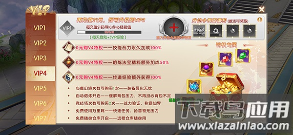 VIP特权在游戏中作用显著。达到VIP4可获得100%传道经验加成,同时增加副本次数;这项特权在前期能建立巨大优势,拉开等级差距。