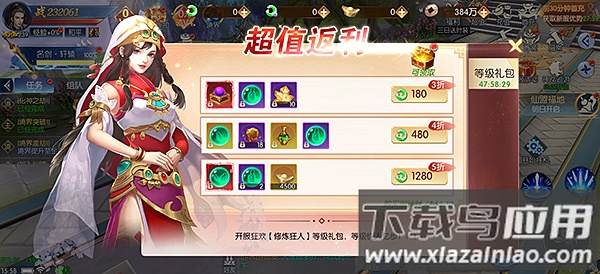 超值返利活动提供永久经验加成道具,首选依然是“超级升级丹”;法宝器灵道具也能永久提升25%经验获取,是冲级争榜的必备选择。