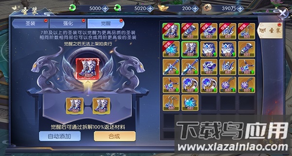 两件相同品质、相同阶数的圣装可觉醒为更高品质圣装;该合成可多次进行;高品质圣装拥有更强的单件属性与套装属性。