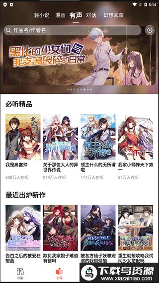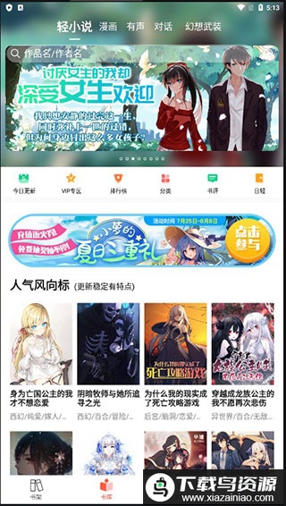 1、获取应用后进入首页,可浏览各类人气轻小说;