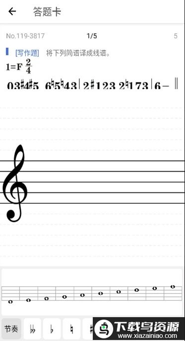 乐理学习功能在设计上力求贴近实际书写习惯,用户可以直接点触线谱上的对应位置来生成谱号、调号、拍号及音符;考虑到节奏音值组合的多样性,该功能采用了允许任意组合的灵活输入方式,完整实现了所有符干连断效果的真实还原。
