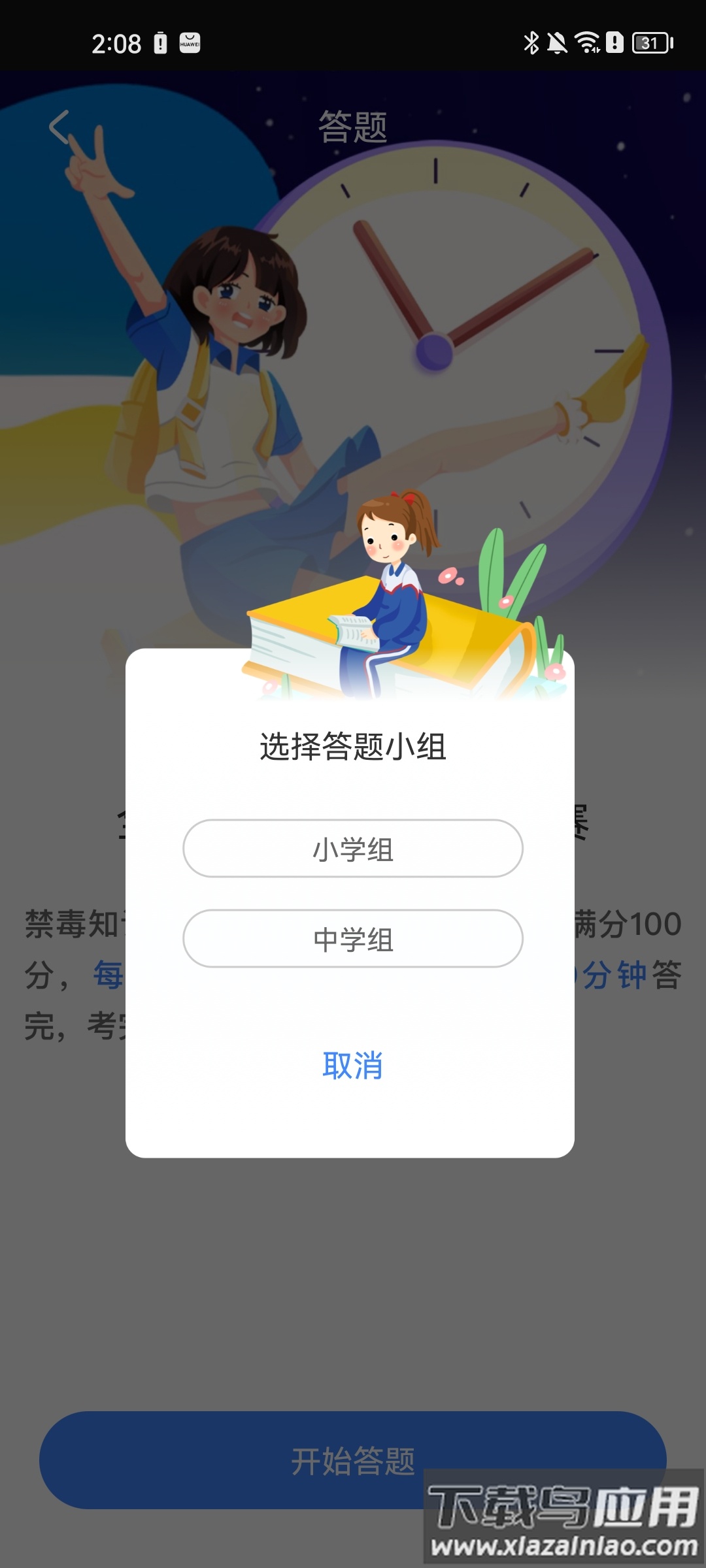 ② 根据自身情况选择对应答题组别,例如小学组或中学组。