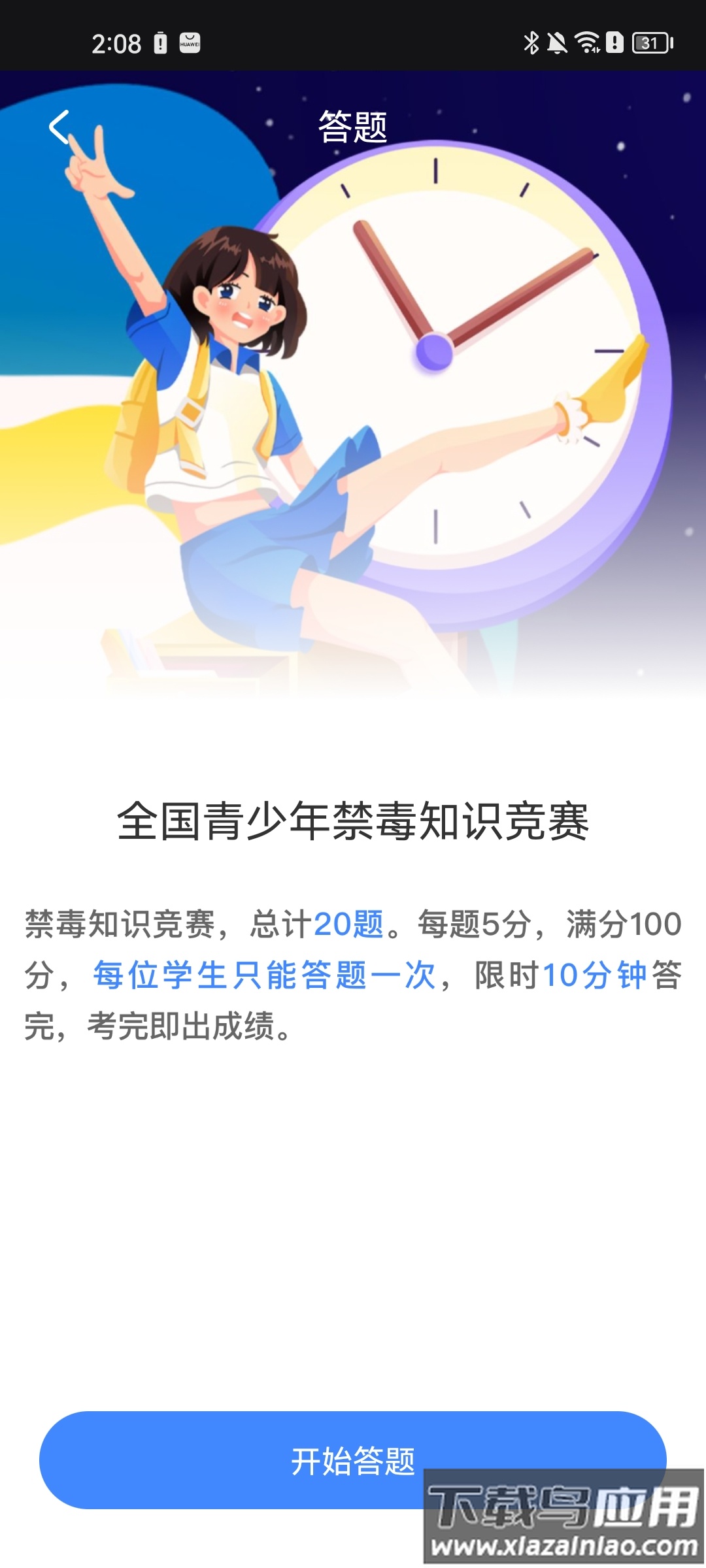 ① 在学习主界面点击顶部的答题入口;