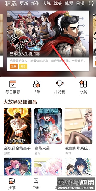 2、界面简洁美观,分类齐全,能轻松定位目标漫画;