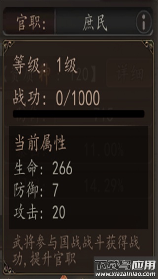 武将通过参与国战积累战功,凭战功晋升官职,并获得永久属性提升。