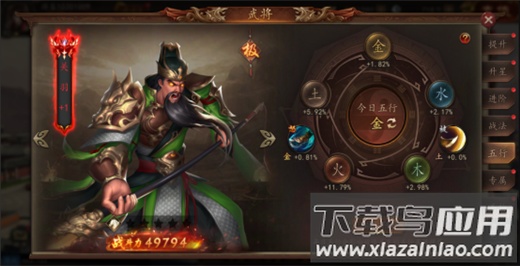 游戏设有独特的五行养成体系,可提升武将技能的五行属性,为伤害或治疗效果附加额外元素效果;五行天命则会在受到克制或相生技能影响时,触发减伤或增益。每日提供免费五行破阵次数,系统每日更替的五行属性会影响破阵结果与挑战关卡守军特性,培养材料主要通过五行挑战玩法获取。