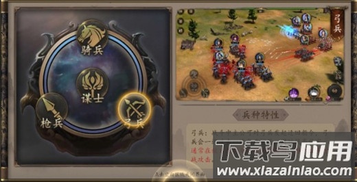 战斗中可对弓兵下达迂回指令,弓兵会一边攻击一边向后撤退,同时提高输出伤害;通常在敌方近战部队逼近时使用,以此拉开距离避免被贴身近战。