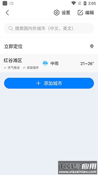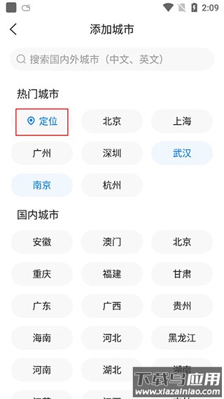 3、您可以使用自动定位添加当前城市,也可通过手动搜索添加目标城市。