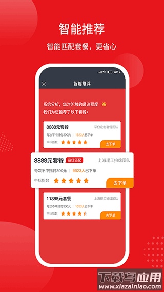 1、平台智能推荐多种热门服务套餐;