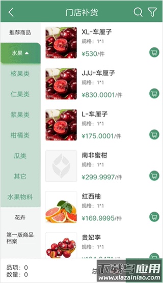 5、在商品添加界面,选取需要补充库存的商品及数量;