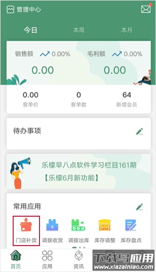 2、登录成功进入首页,点击其中的【门店补货】功能入口;