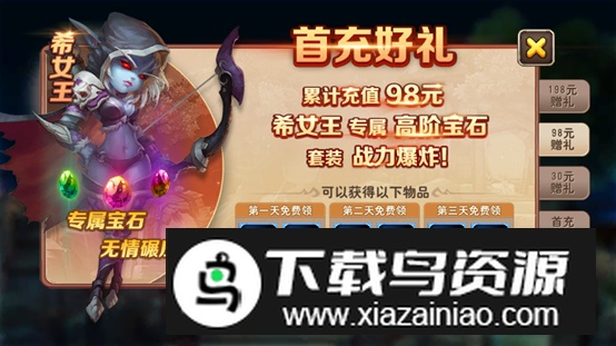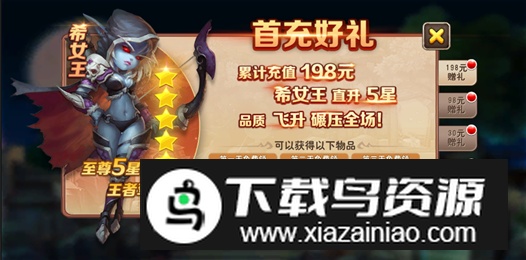 3.198元档玩家还能通过周卡充值优先获取强力辅助英雄;五星满状态的希女王搭配强力辅助,实力出众。