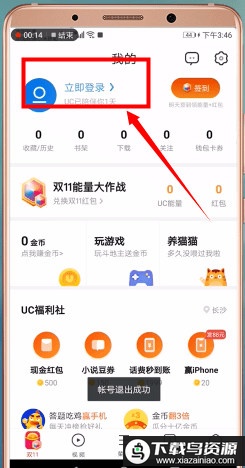 打开UC浏览器客户端,点击右下角【我的】进入个人中心;