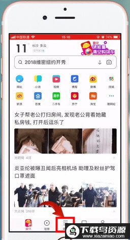 启动UC浏览器并打开任意网页,点击底部工具栏的【菜单】图标;