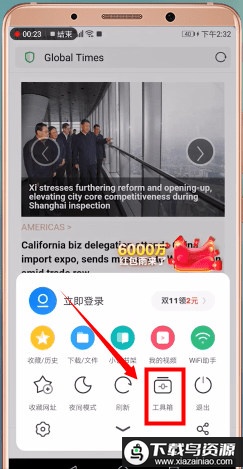 点击底部工具栏的【菜单】图标,选择【工具箱】;