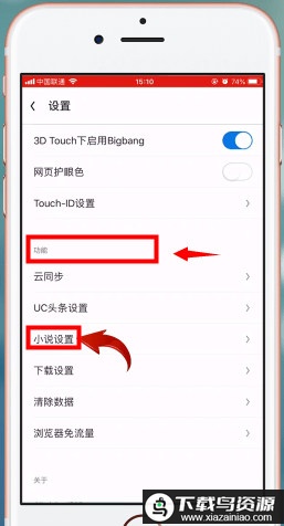 在设置列表的【功能】栏中找到并点击【小说设置】;