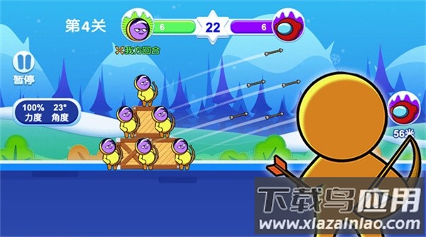 这是一款画风可爱的休闲射击游戏,角色采用简洁的火柴人造型。游戏中设有大量各不相同的关卡,你需要指挥外星弓箭手准确命中目标,将敌人全部清除。其物理弹道系统相当真实,要求玩家仔细调整发射的角度与力量。通过不断闯关,你能陆续获得爆炸箭、冰冻箭等超过十种功能各异的箭矢。游戏既支持单人闯关,也允许玩家在线多人比拼,每天还会刷新特别挑战。击败对手赚取的金币,可以用来购买新颖的角色外观与升级你的装备。