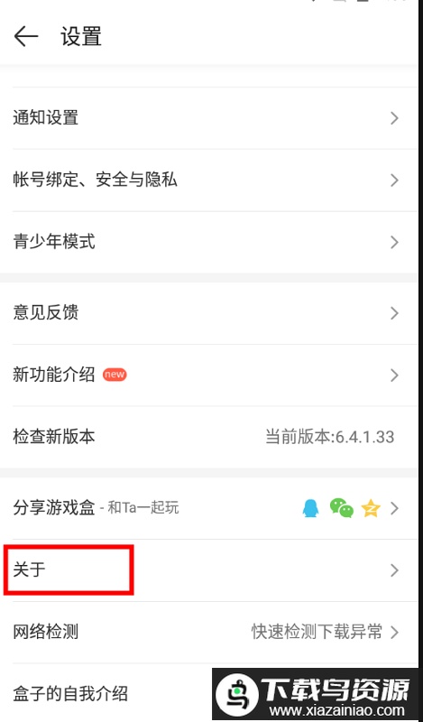 2、在设置界面中选择“关于”选项,即可查看官方的客服联系方式。
