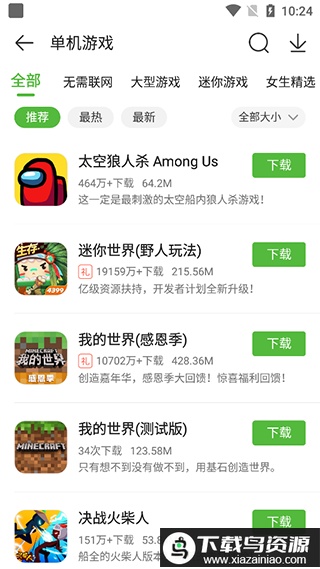2、进入单机分类,挑选喜欢的游戏,点击下载按钮即可安装到手机体验;