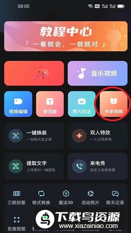 2、在主界面选择“书单视频”功能入口;