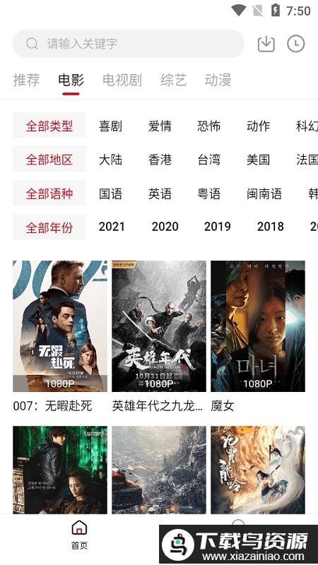 1. 平台能搜索到你喜爱的各类资源,电影按不同类别划分明确;