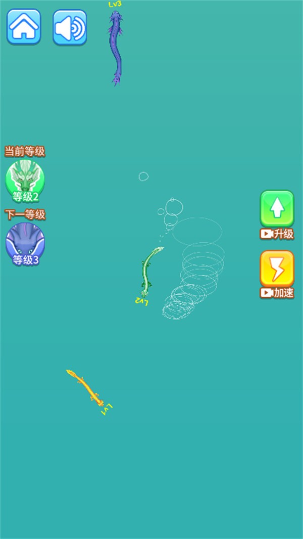 2、众多精彩的关卡任务能够随时加入,使用手指操控你的小蝌蚪,享受吞噬进化的乐趣。