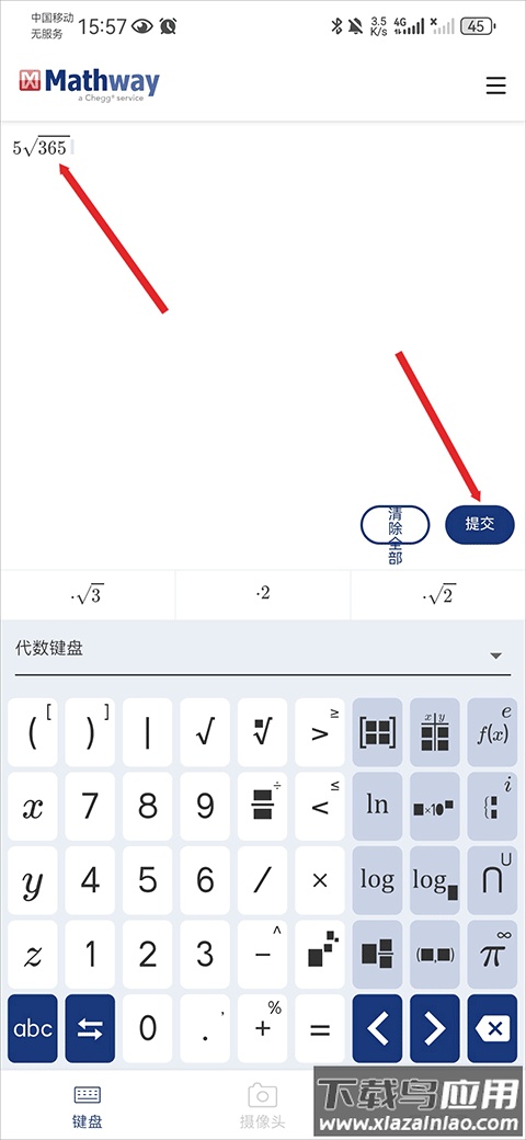 4、Mathway官方版也支持通过内置键盘手动输入数学问题以获得解答;