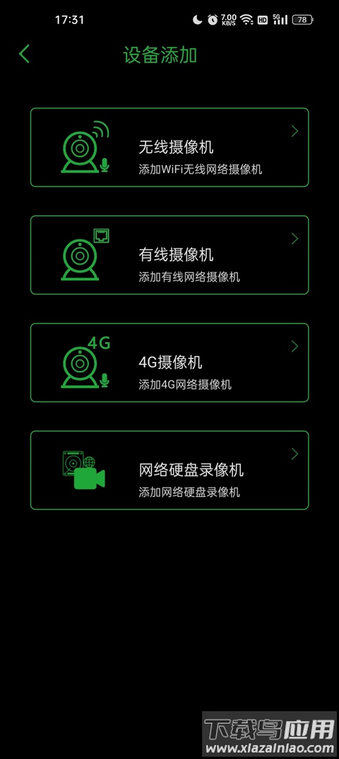 3、选择要添加的设备类型,例如无线摄像机、有线摄像机或网络录像机等;