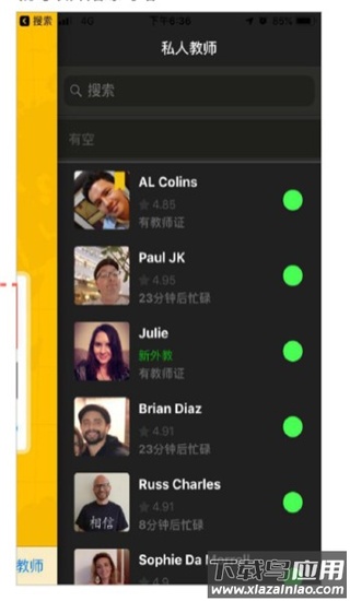 5、在“私人教师”页面选择外教,就可以开始练习咯~