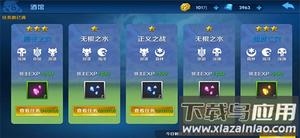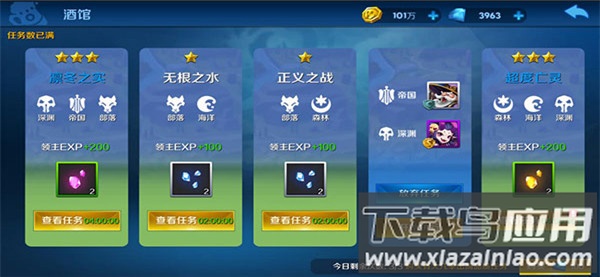 1、酒馆属于挂机玩法,玩家可派遣指定阵营的英雄执行任务,等待规定时间后即可领取奖励。该玩法与领主系统相结合,主要产出用于学习领主天赋的徽记。完成任务还能获得领主经验,提升领主称号等级,是培养领主的重要途径;