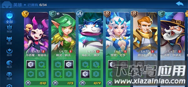 1、游戏收录超过30名英雄,分属帝国、部落、森林、海洋、深渊、异域六大阵营;
