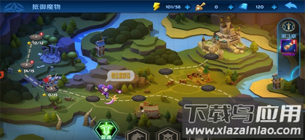 游戏包含三十个主线关卡,每个关卡下设4至10个小关,怪物难度逐步提升。通关主线并非终点,每个关卡还设有精英、噩梦、炼狱三种递增难度,挑战性层层加码。关卡路线设计多样,不同路线的怪物组合各异,需要玩家合理放置英雄并把握技能释放时机。更高难度下还会出现限制条件,例如禁用特定部落英雄或个别角色。