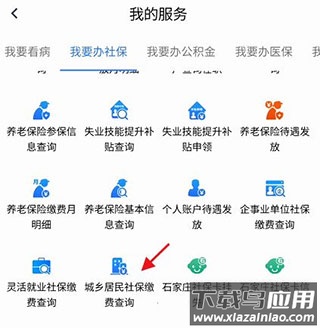在我的服务中选择社保业务办理入口,进入城乡居民社保缴费查询页面。