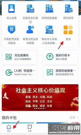 完成认证后返回首页,点击更多选项进入我的服务区域。