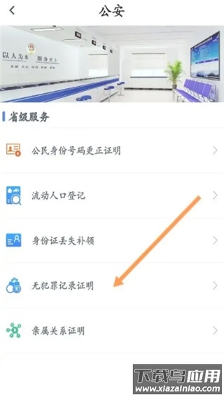 接着在页面中选择“无犯罪记录证明”功能入口;